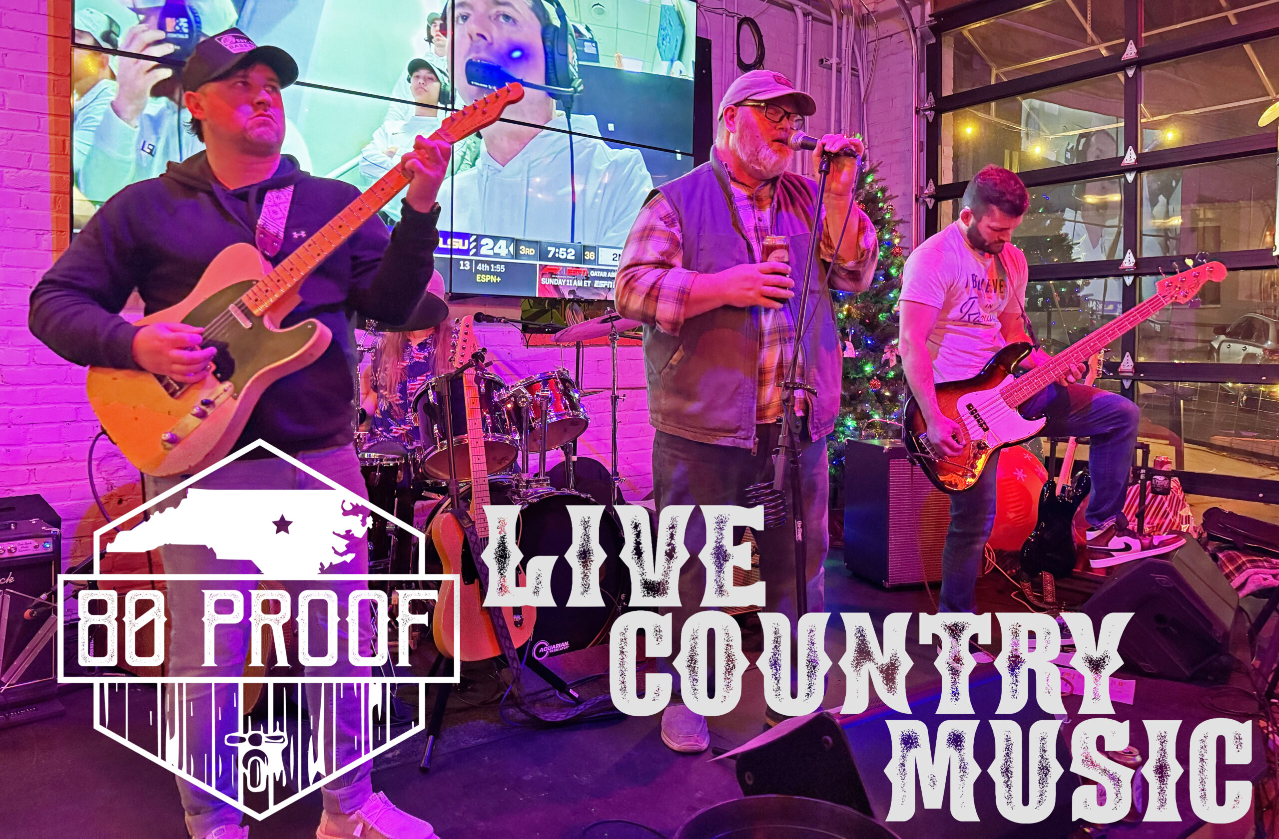 80 Proof is a premiere country cover band based in Raleigh. Their repertoire spans from classic hits to modern favorites. Grab your boots and get ready for a good time as they bring their lively honky tonk performance to the party!